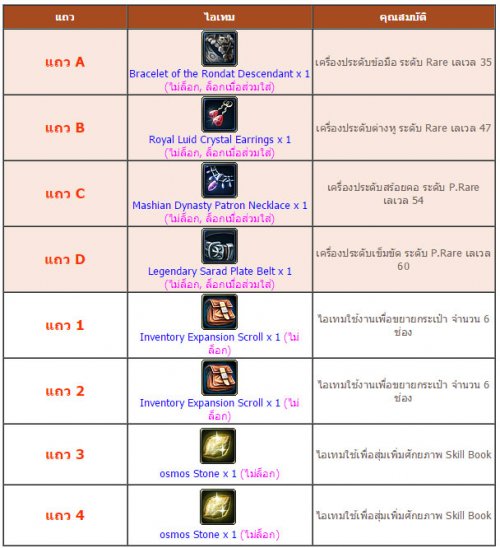 2. นักรบสามารถรับ "รางวัล" ได้เพียงแถวละ 1 ครั้ง ต่อ 1 ID รวมทั้งหมด (จะรับรางวัลได้สูงสุด 9 ครั้ง)